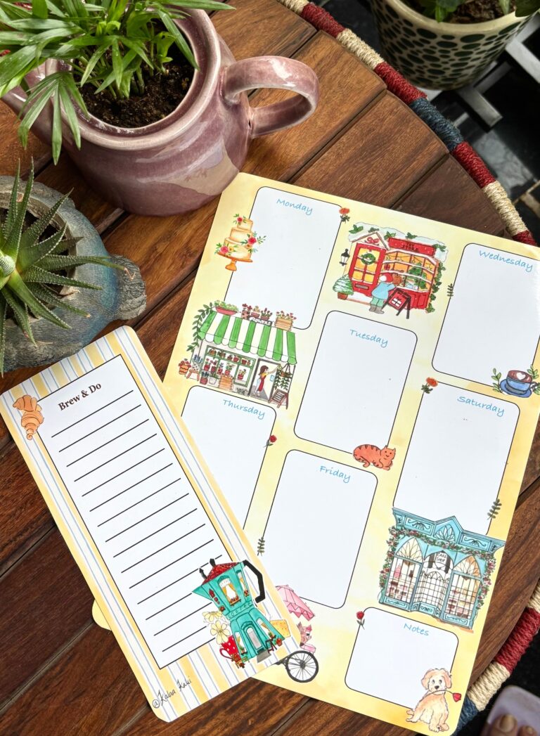 Welcome to a tiny world of paper, paint, and personality ✨Where to-do lists come with a side of charm, calendars feel like little artworks, and even the smallest note gets its moment to shine. Each design begins as a hand-painted illustration, thoughtfully transformed into prints that bring art into your everyday planning—with just the right touch of cozy and quirky.